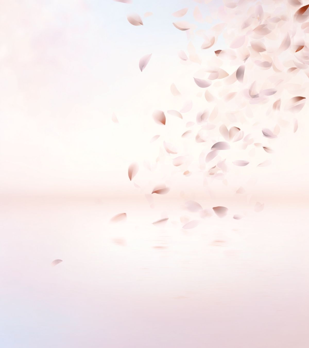 薄桜のグラデーションで仕上げた背景素材です。桜の花びらが水面に舞い落ちるような、白とピンクの淡い抽象イラストです。PCやスマホの壁紙としてお使いいただけます。