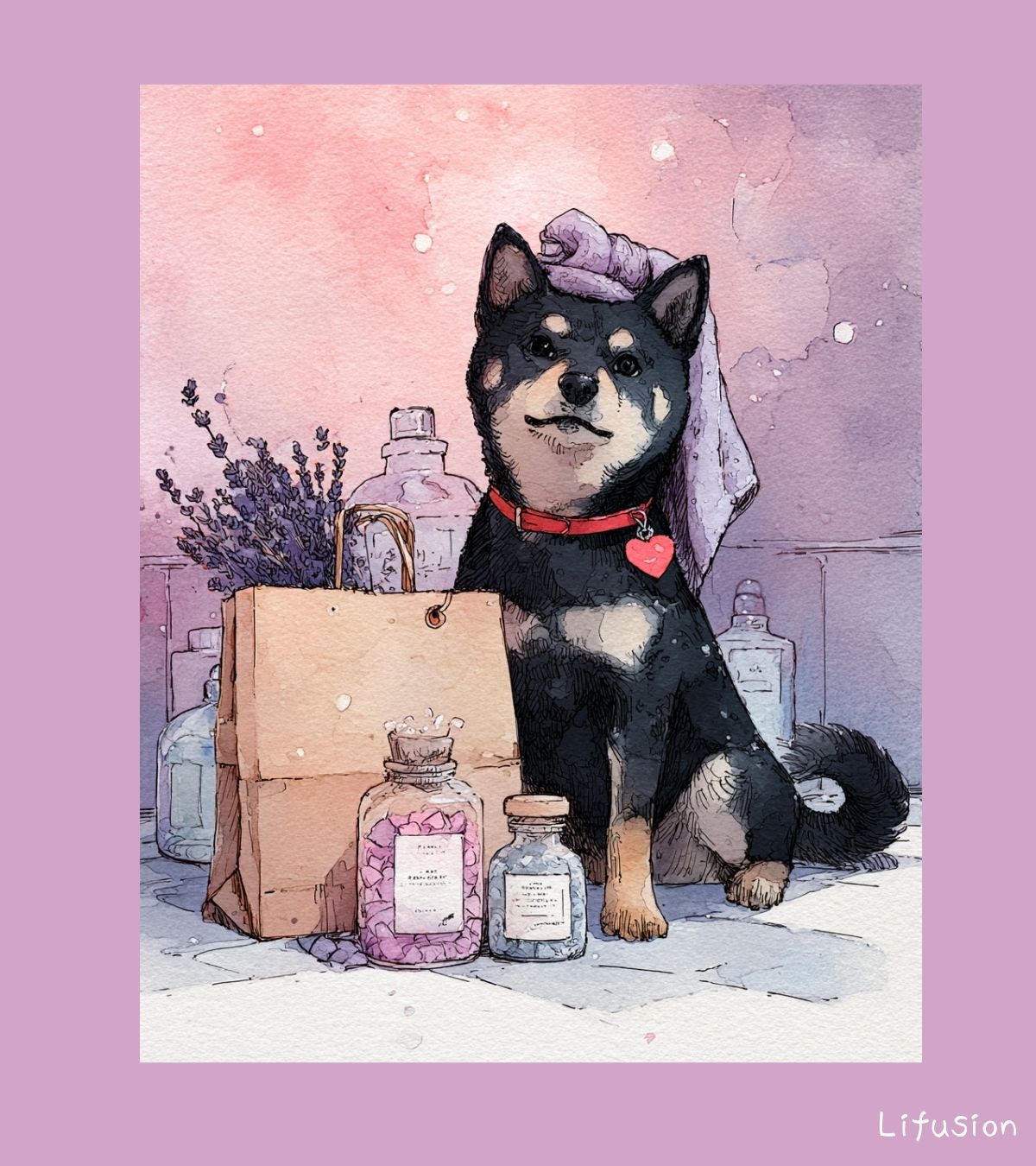 薄紅藤×黒柴のAIイラスト